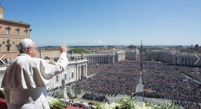 Renovo os meus votos de feliz Páscoa a todos vós reunidos nesta Praça, vindos de todas as partes do mundo. Estendo as minhas felicitações pascais a todos que, de diversos países, estão conectados através dos meios de comunicação social. Levai às vossa famílias e às vossas comunidades o feliz anúncio que Cristo nossa paz e nossa esperança ressuscitou!
