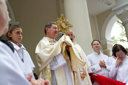 “Homenagear o Cristo levado no ostensório é a atitude de todos os católicos que saem às ruas, em todo mundo”, disse o bispo.