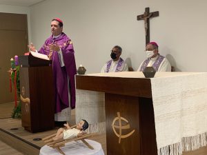 O secretário geral da CNBB, dom Joel Portella Amado disse, em agradecimento ao trabalho dos colaboradores durante o ano, ter se lembrado do dia 20 de março de 2020, a última vez em que o auditório Dom Hélder Câmara, local onde a missa foi celebrada, esteve cheio.