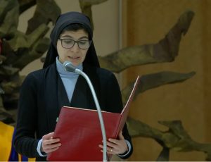 Francisco concluiu, com um texto de Madre Teresa com o qual dar voz às crianças: “Quero um lugar seguro onde posso brincar. Quero um sorriso de quem sabem amar. Quero o direito de ser criança, de ser esperança de um mundo melhor. Quero poder crescer como pessoa. Posso contar contigo?” (Santa Teresa de Calcutá)
