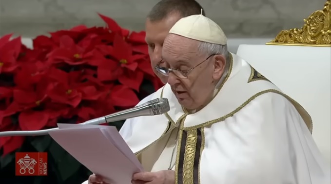 “E as principais vítimas da voracidade humana são sempre os frágeis, os vulneráveis. Também neste Natal, uma humanidade insaciável de dinheiro, poder e prazer não dá lugar – como sucedeu com Jesus – aos mais pequenos, a tantos nascituros, pobres, abandonados. Penso sobretudo nas crianças devoradas por guerras, pobreza e injustiça. Mas é precisamente lá que vem Jesus, menino na manjedoura do descarte e da rejeição.”