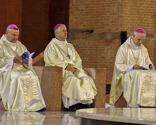 A missa desta quarta-feira, dia 22, oitavo dia da 53ª Assembleia Geral (AG) da Conferência Nacional dos Bispos do Brasil (CNBB), foi dedicada às famílias. Presidiu a celebração, na Basílica do Santuário Nacional, o bispo de Camaçari (BA), dom João Carlos Petrini, e concelebraram os bispos de Coari (AM), dom Marcos Marian Piateck, e o auxiliar do Rio de Janeiro (RJ), dom Antônio Augusto Dias Duarte. Casais e membros da Pastoral Familiar participaram da missa.