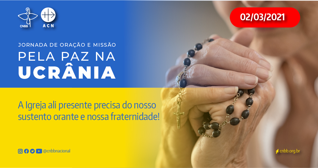 Atendendo ao pedido do Papa Francisco, na Audiência geral desta quarta-feira, 23 de fevereiro, que falou da sua tristeza sobre o agravamento da situação na Ucrânia e convocou um Dia de oração e jejum pela paz e dando continuidade as Jornadas de Oração e Missão pela Paz, a Comissão Episcopal Pastoral para a Ação Missionária e Cooperação Intereclesial da CNBB e a Fundação Pontifícia Ajuda à Igreja que sofre (ACN), realizam conjuntamente na próxima quarta-feira, 2 de março, a Jornada de Oração e Missão pela Paz na Ucrânia.