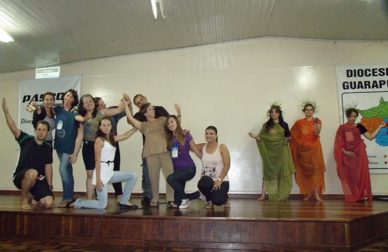 Os participantes das oficinas já colocaram em prática, durante o evento, aquilo que foi visto em sala de aula. Os alunos do teatro realizaram uma apresentação ao final da palestra do sábado (foto). Os integrantes das oficinas de texto jornalístico e fotografia foram os responsáveis pela elaboração das matérias que foram publicadas no site da diocese de Guarapuava, Rádio Cultura AM-FM e farão parte da próxima edição do “Jornal A Igreja na Diocese de Guarapuava”. O cerimonial de encerramento foi todo organizado pelos alunos da oficina de oratória/cerimonial.