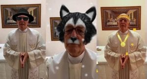 “Desculpe os efeitos, adicionei sem ver, para iniciar a gravação. Deus quer também um pouco de alegria. A intenção foi mesmo de oração. Os efeitos foram sem intenção”, escreveu o padre na descrição do vídeo em sua página, que acabou com a sua oração sendo estampada por alguns efeitos como um chapéu e óculos escuros, uma corrente no pescoço e até um rosto de lobo.