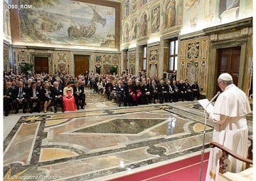 Em seu discurso, Francisco partiu do tema abordado pela Conferência em relação à contribuição da comunidade internacional na luta contra a pobreza e fez referência particular à atual crise dos refugiados. “A crise dos refugiados, cujas proporções estão aumentando dia a dia, é uma daquelas à qual me sinto bastante próximo. Na minha visita à Ilha de Lesbos fui testemunha das tristes experiências de sofrimento humano, sobretudo das famílias e das crianças. Por isso, a comunidade internacional é convidada a dar respostas políticas, sociais e econômicas a tais dramas que ultrapassam os confins nacionais e continentais”, disse o papa.