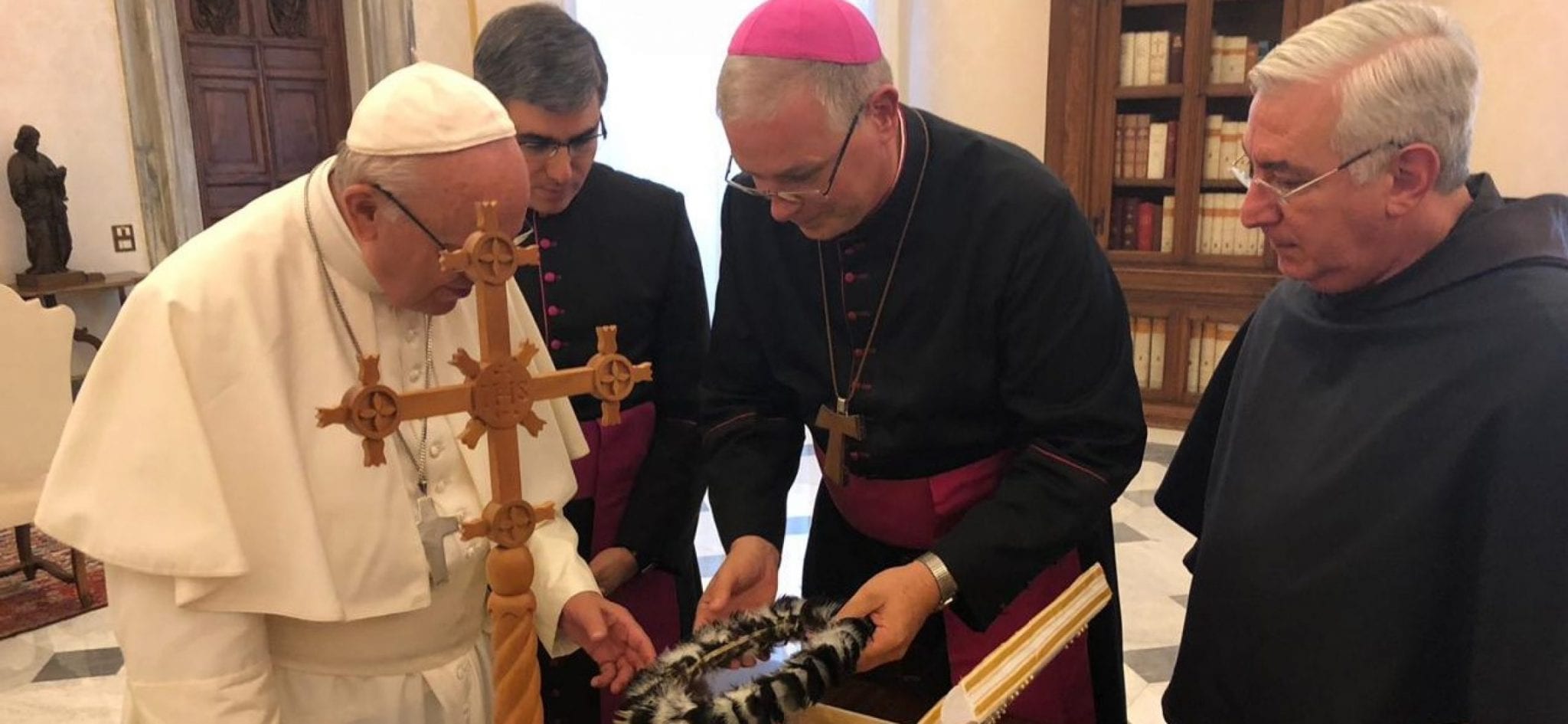 O papa Francisco recebeu o bispo da Diocese de Óbidos, Dom Bernardo Bahlmann, na segunda-feira (5). Francisco recebeu e abençoou a réplica da cruz missionária que será símbolo em todas as dioceses do Brasil na animação do Mês Missionário Extraordinário, realizado em outubro de 2019.