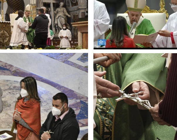 Eles receberam uma cruz, lembrando a cruz pastoral usada primeiramente por São Paulo VI e depois por São João Paulo II, para reavivar o caráter missionário do serviço que se preparam para administrar.