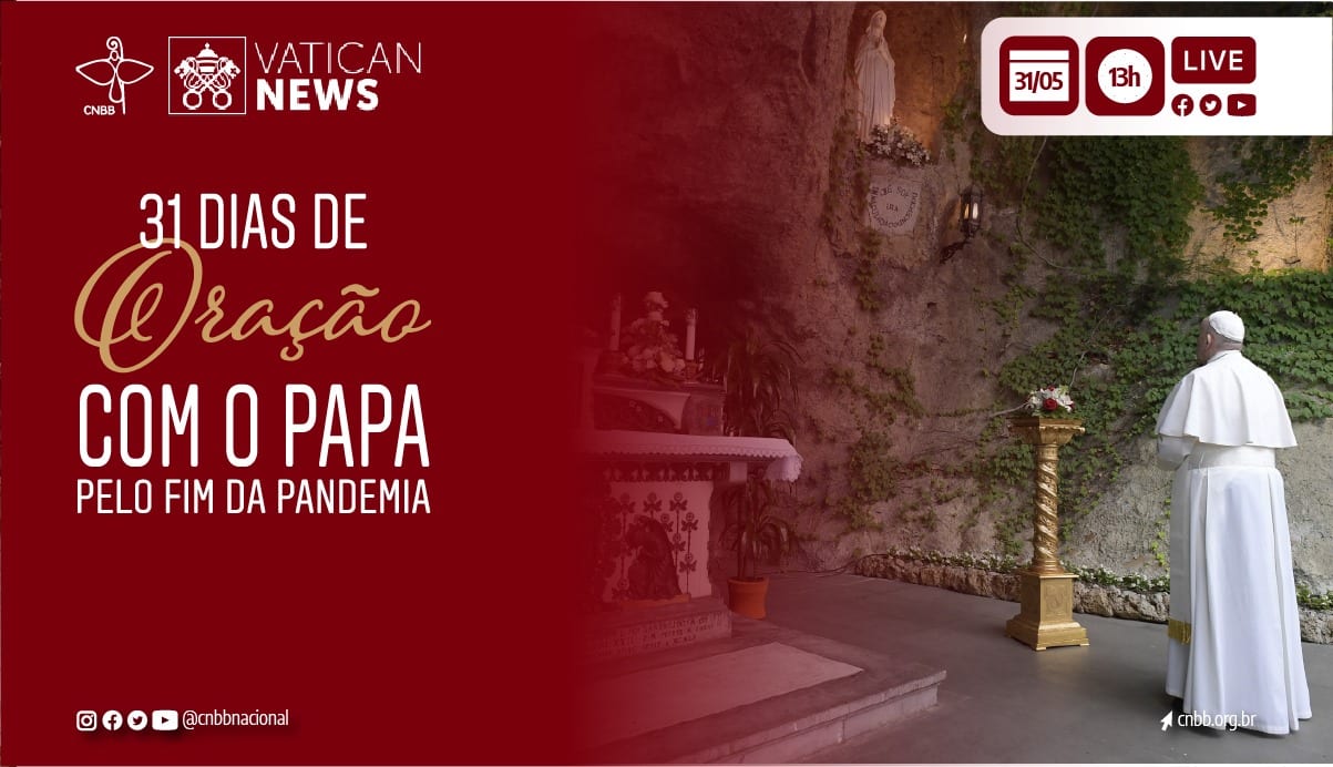 A Conferência Nacional dos Bispos do Brasil transmitirá, em suas redes sociais, o fechamento da maratona de oração no mês mariano e os santuários pelo mundo no 31 de maio, com a presença do Papa Francisco nos jardins do Vaticano, com tradução da transmissão para o português pelo jornalista Silvonei Protz, do VaticanNews. O horário de transmissão será a partir das 12h55 no horário de Brasília (18h do Vaticano). A iniciativa está sendo realizada à luz da expressão bíblica: “De toda a Igreja subia incessantemente a oração a Deus” (At 12,5).