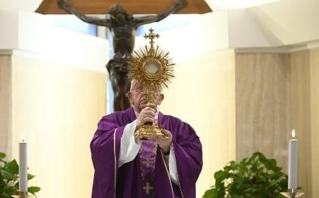 Também hoje, Francisco encerrou a celebração com a Adoração e Bênção Eucarística, convidando a fazer a comunhão espiritual: