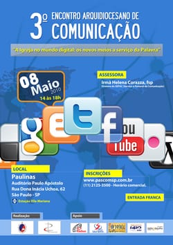 A Pastoral da Comunicação (Pascom) da arquidiocese de São Paulo (SP), em parceria com as Edições Paulinas, Salesianas, e Rádios 9 de julho, América AM e Imaculada Conceição, promove no dia 8 de maio, o 3º Encontro Arquidiocesano de Comunicação.