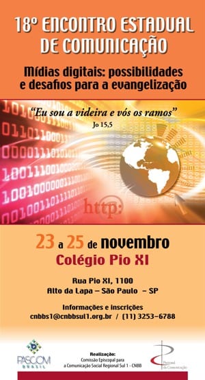Durante reunião realizada na sede do Regional Sul 1 da CNBB (São Paulo), no dia 27 de agosto, foram divulgados o cartaz, a programação e outros detalhes sobre a 18ª edição do Encontro Regional de Comunicação. Destinado aos agentes de comunicação e profissionais da mídia católica das arquidioceses e dioceses do estado de São Paulo, o encontro terá como tema “Mídias Digitais: desafios e possibilidades para a evangelização”. Os assessores serão a professora Polyana Ferrari da Pontifícia Universidade Católica de São Paulo (PUC-SP), especialista em mídias digitais e o padre Gildásio Mendes dos Santos, salesiano, de Campo Grande, com especialização no uso das mídias digitais na evangelização.