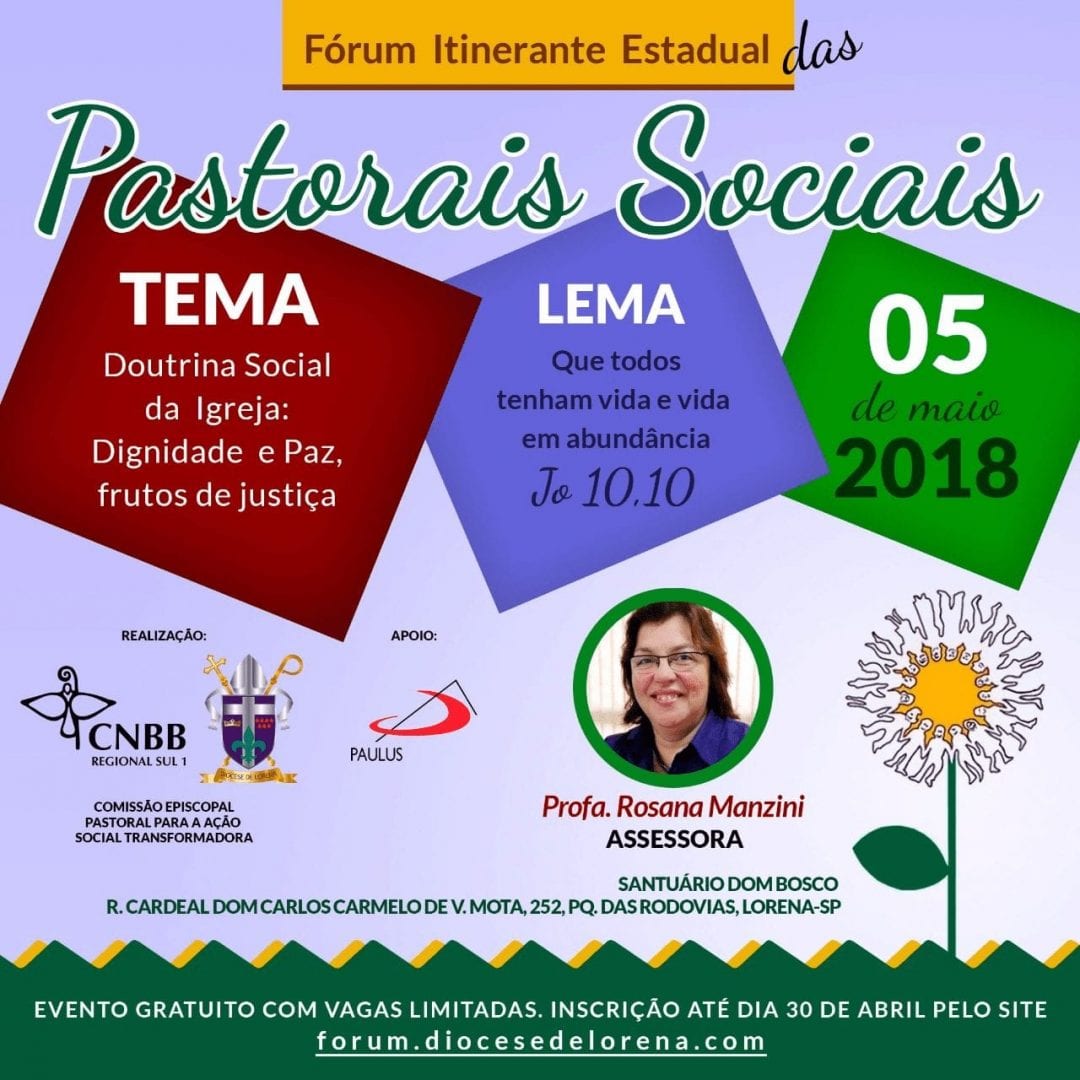 A Comissão Episcopal Pastoral para Ação Social Transformadora do Regional Sul 1 da CNBB abre inscrições para o Fórum Itinerante das Pastorais Sociais (FIPS), que acontecerá no dia 05 de maio em Lorena (SP). O evento é aberto a todos os agentes que atuam nas pastorais, movimentos sociais, grupos e entidades.