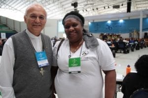 A coordenadora nacional eleita para o triênio 2018-2020, Marilda dos Santos Lima, de São Paulo (SP) e o bispo referencial dom Luiz Gonzaga Fechio inauguraram o painel de experiências evangelizadoras da 56ª Assembleia Geral da CNBB com a trajetória da 40 anos da Pastoral do Menor.