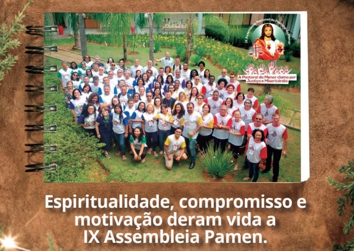 De 14 a 18 de novembro de 2017, a Pastoral do Menor (Pamen) realizou a IX Assembleia Nacional. O local escolhido, recanto Coqueiro d´Agua, em Santa Luzia (MG) propiciou momentos de espiritualidade e contato com a natureza. Seguindo a metodologia pensada: Ver, Julgar e Agir, os participantes puderam refletir sobre a realidade, analisar e agir sobre mesma atingindo os resultados esperados: a definição das prioridades da Pamen para o próximo triênio (2018-2020), bem como a eleição das novas coordenações nacional e regionais.
