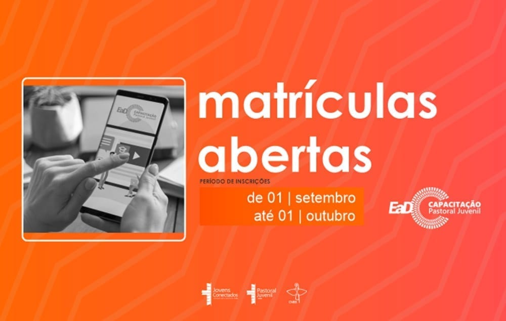 Estão abertas as inscrições para as turmas do segundo semestre dos cursos gratuitos de Capacitação da Pastoral Juvenil do Brasil oferecidos pela Plataforma de Ensino à Distância (EaD) da Comissão Episcopal Pastoral para a Juventude da Conferência Nacional dos Bispos do Brasil (CNBB).