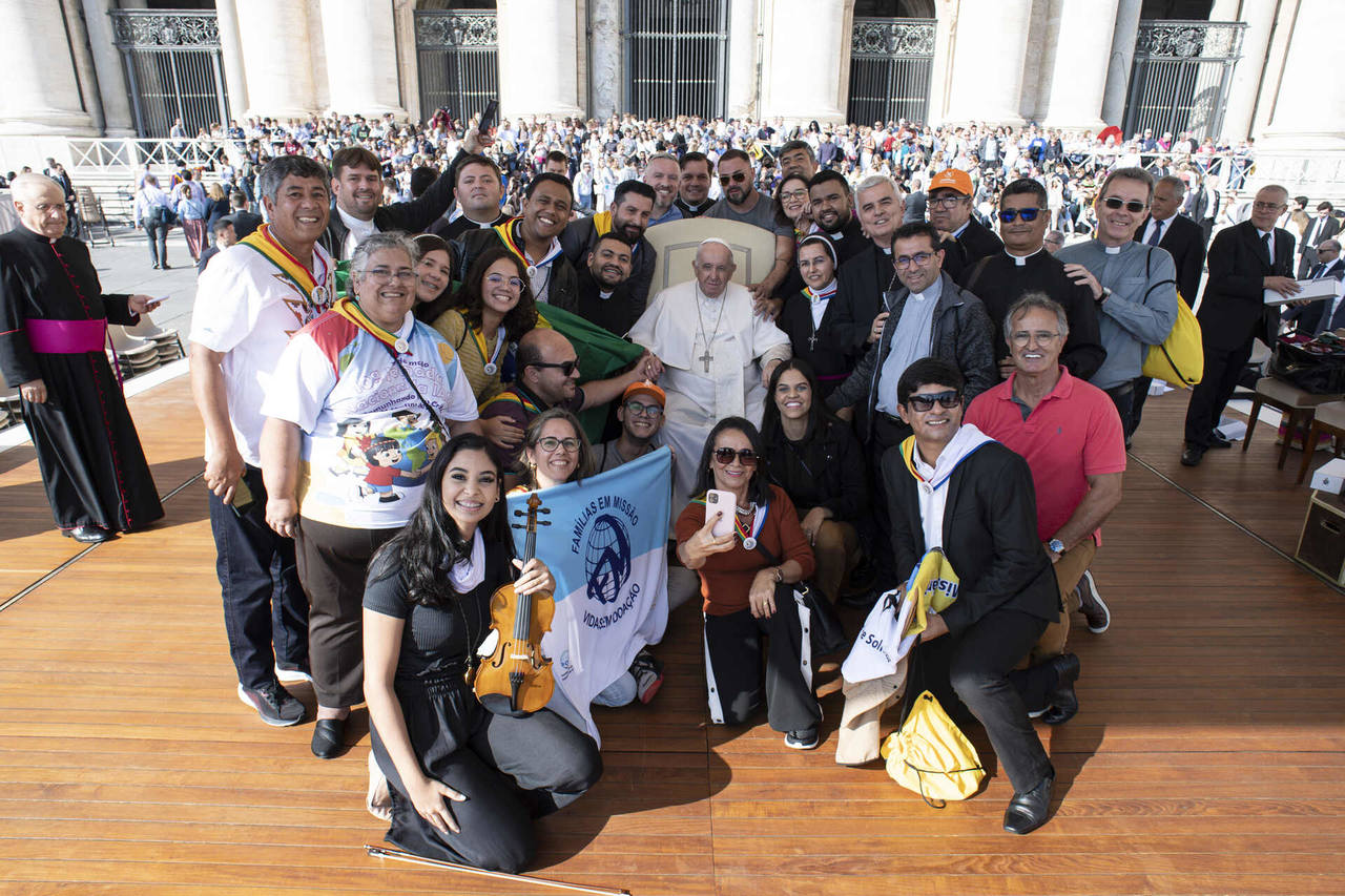 Como momento marcante da peregrinação, o grupo teve a oportunidade de ser recebido pelo Papa Francisco, ao final da audiência geral, no dia 12 de outubro, dia de Nossa Senhora Aparecida, padroeira do Brasil. Sempre de forma afável, Francisco cumprimentou os peregrinos, entregando como lembrança a todos um terço. Com emoção e surpresa, o grupo destacou a importância do momento vivido com o Papa, reforçando a identidade missionária do caminho vivido na peregrinação.
