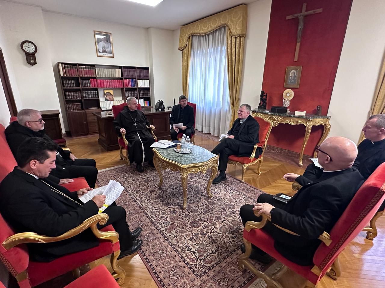 No sétimo dia de visitas à Santa Sé, terça-feira, 27 de janeiro, os membros da presidência da Conferência Nacional dos Bispos do Brasil (CNBB) se encontraram com o chefe da Secretaria Estado do Vaticano, o cardeal Pietro Parolin, e com o secretário do Dicastéri0 para o Culto Divino e a Disciplina dos Sacramentos, dom Vittorio Francesco Viola.