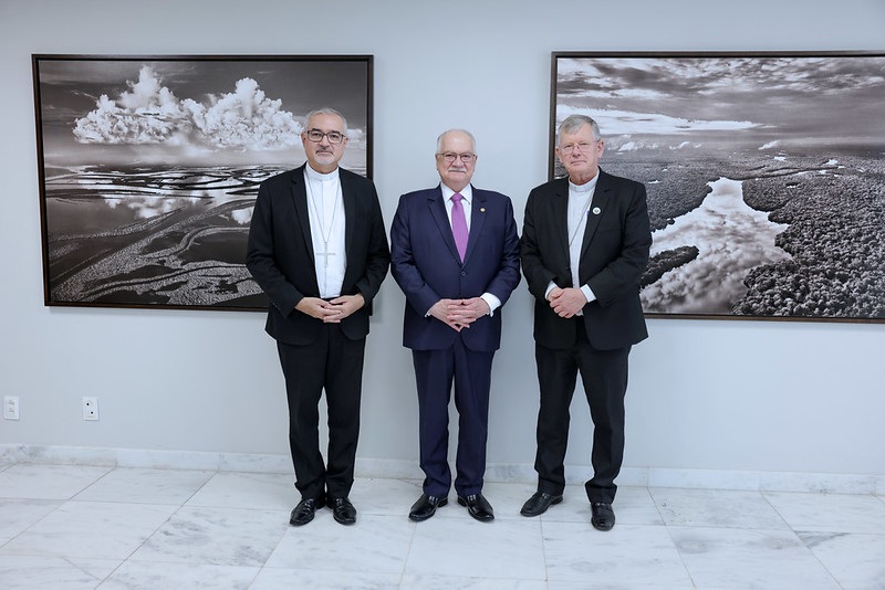 Na sequência, o presidente do STF recebeu também os bispos dom José Valdeci Mendes, dom Vicente de Paula Ferreira e dom Norberto Foerster, da Comissão Episcopal para Ação Sociotransformadora e Comissão Especial para Ecologia Integral e Mineração da CNBB (foto abaixo).