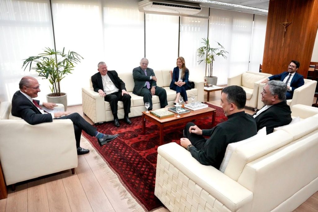 O arcebispo de Porto Alegre (RS) e presidente da Conferência Nacional dos Bispos do Brasil (CNBB), cardeal Jaime Spengler, acompanhado pelo sub-secretário adjunto geral, padre Leandro Megeto, e pelo assessor de relacões institucionais e governamentais, frei Jorge Luiz Soares, foi recebidos em uma visita de cortesia anual programada entre as instituições, na quinta-feira, 5 de março, pelo vice-presidente do Brasil, Geraldo Alckmin.