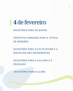 Após a rodada de audiências com quatro Dicastérios e com a Pontifícia Comissão para a Tutela dos Menores, a presidência da Conferência Nacional dos Bispos do Brasil (CNBB) pontua o que foi destaque no primeiro dia de agendas oficiais em Roma, 4 de fevereiro.