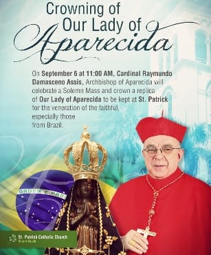 O arcebispo de Aparecida (SP) e presidente da CNBB, cardeal Raymundo Damasceno Assis, fará a entronização da imagem fac-símile de Nossa Senhora Aparecida na igreja de St. Patrick, em Miami, nos Estados Unidos.