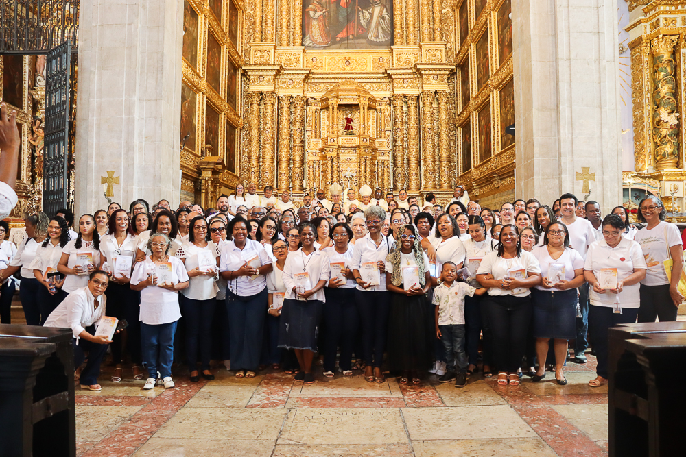 A Catedral Basílica ficou lotada na manhã deste domingo, 8 de setembro – Natividade de Nossa Senhora. Todos queriam testemunhar os primeiros a serem instituídos no Ministério de Catequista na Arquidiocese de São Salvador da Bahia: 184, no total. A Celebração Eucarística teve início às 8h, sob a presidência do Arcebispo de São Salvador da Bahia, Primaz do Brasil, cardeal Sergio da Rocha, e foi concelebrada pelo bispo auxiliar, dom Dorival Barreto; pelo cura da Catedral, padre José Abel Pinheiro; pelo assistente eclesiástico do Serviço Arquidiocesano de Animação Bíblico-catequética, padre José Carlos Ferreira; e por outros padres do clero da Sé Primacial do país [clique aqui e veja a transmissão da Missa].