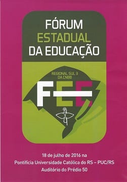 Com o apoio da Faculdade Dom Bosco e da Pontifícia Universidade Católica do Rio Grande do Sul (PUC-RS), o regional Sul 3 da Conferência Nacional dos bispos do Brasil (CNBB) promoverá, no dia 18 de julho, o Fórum Estadual de Educação (FEE). O evento será realizado no auditório da PUC-RS e tem por objetivo relançar, de forma orgânica, metódica e sistemática, a Pastoral da Educação em cada uma das 18 dioceses que compõem o regional.