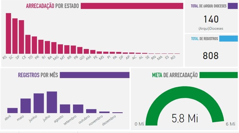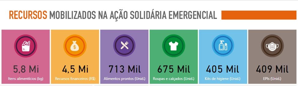 De acordo com a Cáritas Brasileira, organização que sistematiza e monitora os dados da campanha, o último balanço, de 15 de dezembro, aponta a marca de 5,8 mil toneladas de alimentos arrecadadas em 140 dioceses e arquidioceses brasileiras. Em recursos financeiros, a campanha atingiu R$ 4,5 milhões e meio. A campanha produziu e distribuiu para as populações mais vulneráveis cerca de 713 mil alimentos (quentinhas), arrecadou e distribuiu 675 mil unidades de roupas e calçados, 405 mil kits de higiene e 409 mil equipamentos de proteção individual.