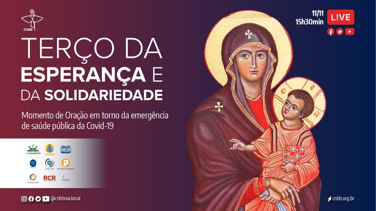 Nesta quarta-feira, 10 de novembro, às 15h30, reze com a Igreja no Brasil o Terço da Esperança e da Solidariedade em prol das pessoas que tem padecido pelo novo coronavírus, os profissionais da saúde, os que estão na linha de frente do combate à pandemia, as famílias, os desempregados, os que precisam de conforto e esperança.