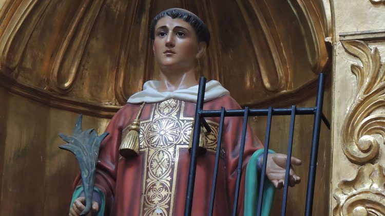 Lourenço nasceu na Espanha na primeira metade do século III. É o terceiro santo padroeiro da cidade de Roma depois dos santos Pedro e Paulo. Foi diácono da Igreja de Roma em uma época de perseguição dos cristãos. Responsável pela administração dos bens e ofertas para suprir as necessidades dos pobres, órfãos e viúvas, foi condenado à morte pelo imperador Valério em 258 d.C. O Papa Sisto II tinha sido morto em 6 de agosto. Inicialmente, Lourenço foi poupado com o objetivo de obter informações sobre os bens da comunidade. Mas Lourenço, depois de distribuir aos pobres os poucos bens que a Igreja tinha na época, apresentou uma multidão de pobres, aleijados e cegos às autoridades romanas e disse: “Estes são os tesouros da Igreja”.
