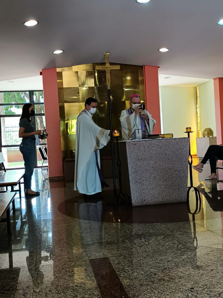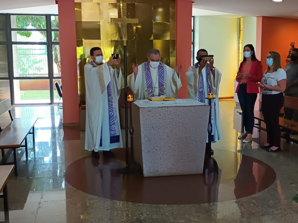 Se dirigindo aos colaboradores, em sua homilia, dom Joel ressaltou que apesar da sede ser também um local de trabalho, todos também tinham a oportunidade de tirar um tempo para parar e rezar. “A Igreja nos propõe um tempo pedagógico para ensinar para nós que é preciso de vez em quando parar – parar, sossegar e cuidar -, disse em analogia ao tempo quaresmal.