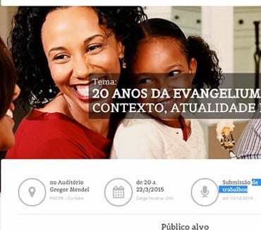 Com o objetivo de celebrar os 20 anos da Exortação Apostólica Evangelium Vitae, escrita por São João Paulo II, serão realizados, em Curitiba, de 20 a 22 de março de 2015, o Seminário da Comissão de Bioética da CNBB e 6ª Jornada Interdisciplinar de Pesquisa em Teologia e Humanidades da Pontifícia Universidade Católica do Paraná (PUC/PR).