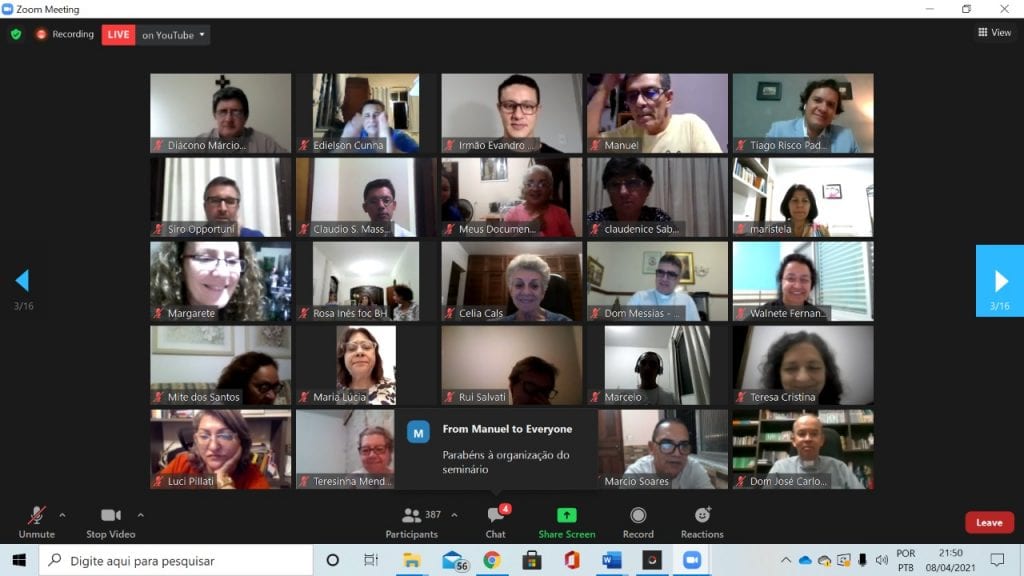O Primeiro dia do Seminário “Sanando as Próprias Feridas” promovido pela Conferência Nacional dos Bispos do Brasil (CNBB) e a Conferência dos Religiosos do Brasil (CRB), por meio do Núcleo Lux Mundi, foi iniciado nesta quinta-feira, 8 de abril, com reflexão e profundidade. Cerca de 450 participantes estão acompanhando os debates e reflexões do evento que acontece até o sábado, dia 10 de abril, de forma on-line. As reflexões do seminário são orientadas para aprofundar o pedido de conversão e promoção de ações concretas, expresso na Carta Apostólica “Vos Estis Lux Mundi”, do Papa Francisco, com ênfase em três tópicos: