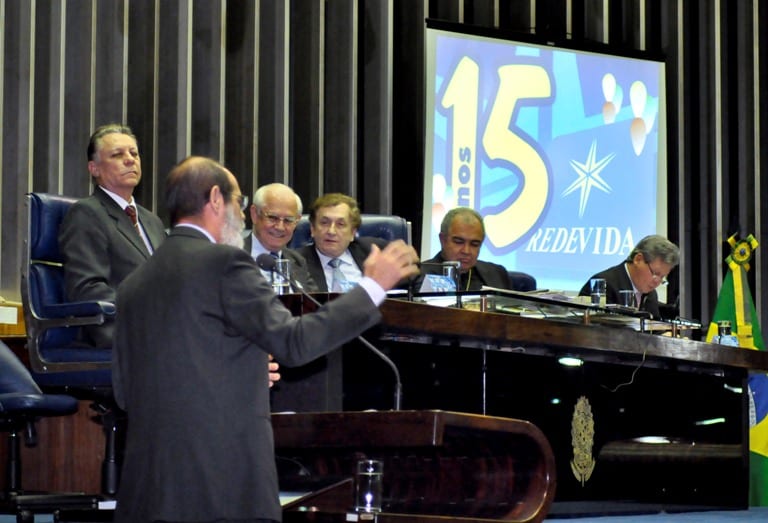 O plenário do Senado Federal homenageou, na tarde desta segunda-feira, 21, a Rede Vida de Televisão pelos seus 15 anos de fundação. A solenidade foi requerida pelo senador Arthur Virgílio (PSDB-AM) e aberta pelo presidente dos trabalhos plenários da tarde de hoje, o senador Mão Santa (PSC-PI). O parlamentar destacou que, antes do surgimento da emissora, o Brasil vivia uma situação paradoxal. Segundo ele, o país com o maior número de católicos do mundo, não dispunha de uma rede de televisão compromissada com aquela religião.