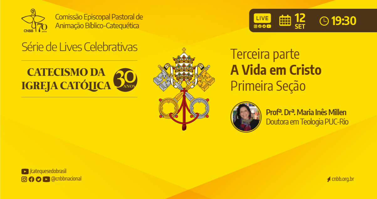 No contexto das celebrações dos 30 anos do Catecismo da Igreja Católica, será realizada, nesta segunda-feira, 12 de setembro, a 11ª live formativa sobre o documento que reúne a Doutrina Católica. Adiado por conta da realização da Assembleia dos Bispos, na última semana, o encontro virtual ocorre na noite de hoje, a partir das 19h30, por meio de transmissão nas redes sociais da CNBB.