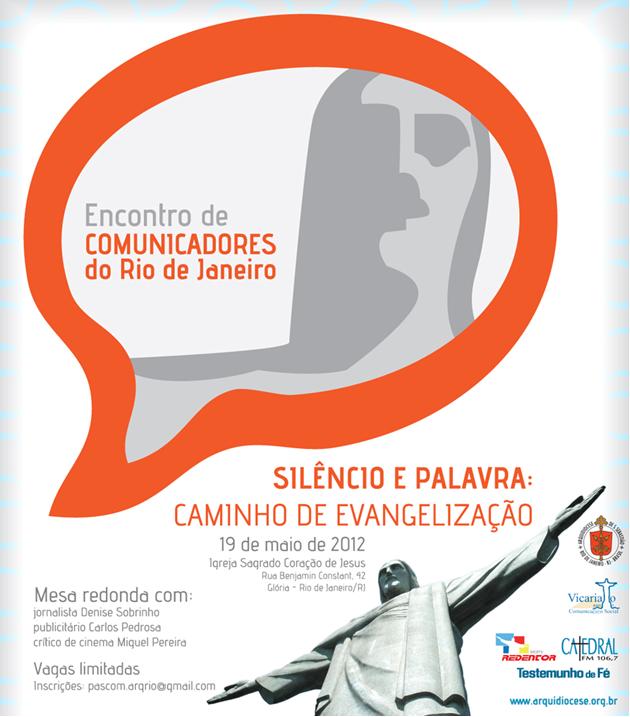 No próximo dia 19 de maio, os profissionais de comunicação que atuam no Rio de Janeiro (RJ) têm encontro marcado. Das 9h às 13h estarão aprofundando conhecimentos sobre “Silêncio e Palavra”, com o objetivo de avaliar a importância de ambos para um bom discernimento e para o aprofundamento da comunicação. Promovido pelo Vicariato para a Comunicação Social desta arquidiocese, o Encontro de Comunicadores pretende proporcionar à imprensa carioca, especialmente convidada, uma oportunidade para confraternização, diálogo e reflexão sobre a mensagem escrita pelo papa Bento XVI para o Dia Mundial das Comunicações.