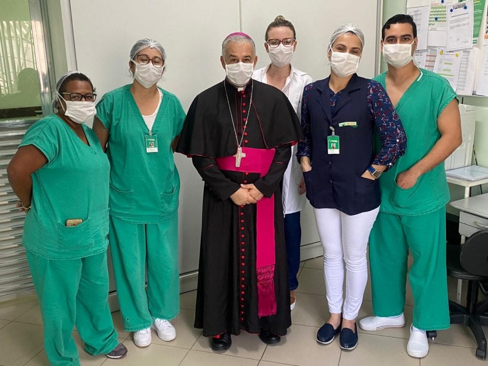 “Desde a origem da pandemia, esteve em meu coração o desejo de rezar pelos enfermos e pelos agentes de saúde, em nossas missas diárias” – afirmou Dom Manoel, continuando – “sei que a oração é importante, mas sempre sentia a necessidade de realizar um gesto mais concreto, para animar os agentes de saúde que correm riscos e carregam consigo o medo de se contaminar e também contaminar as suas famílias”.