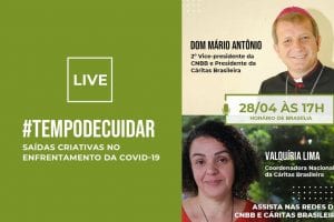 A live acontece toda terça-feira, às 17h, no Facebook da CNBB e Cáritas Brasileira e no Youtube da CNBB. Participe utilizando a #tempodecuidar