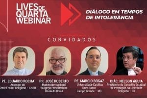 O webinar será às 20h, no canal de Youtube da Comissão de Educação da CNBB. Participam um pastor Igreja Presbiteriana Unida do Brasil, um padre diocesano de Campo Grande (MS), e o presidente do Conselho Estadual de Promoção da Liberdade Religiosa do RJ