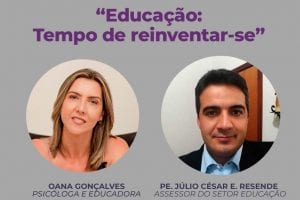 No bate papo marcado para às 20h, padre Júlio César conversa com a convidada sobre a temática: “Educação é tempo de reiventar-se”