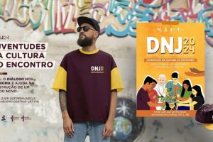 Edição do DNJ deste ano propõe o tema "Juventudes na Cultura do Encontro”, o lema “O diálogo nos aproxima e ajuda na construção de um mundo novo” e a inspiração bíblica “Onde quer que permaneças, permanecerei contigo” (Rt 1,16). Autoria do cartaz é do jovem Edson Narciso Morais Cruz, da diocese de Itapipoca (CE)