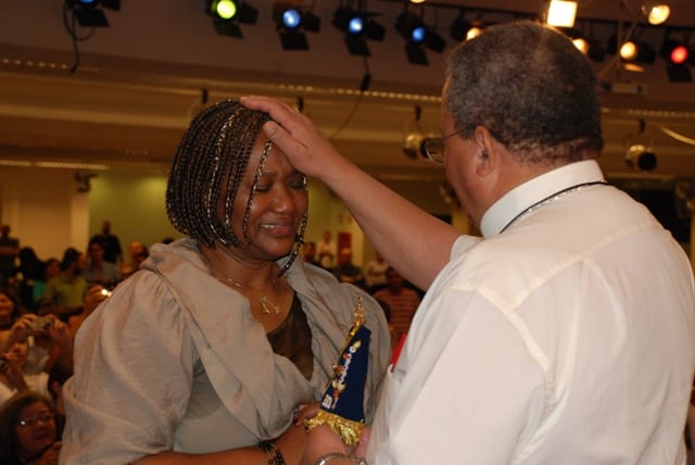 Os participantes do 2º Encontro Nacional da Pastoral da Comunicação, que acontece em Aparecida (SP), receberam, nesta quinta-feira, 22, o ator Eriberto Leão e a instrutora de dramaturgia, Iris Gomes, ambos da Rede Globo, além de Mercedes, mãe da atriz Taís Araújo. Eles foram convidados para falar durante o evento sobre a produção e a representação na telenovela.