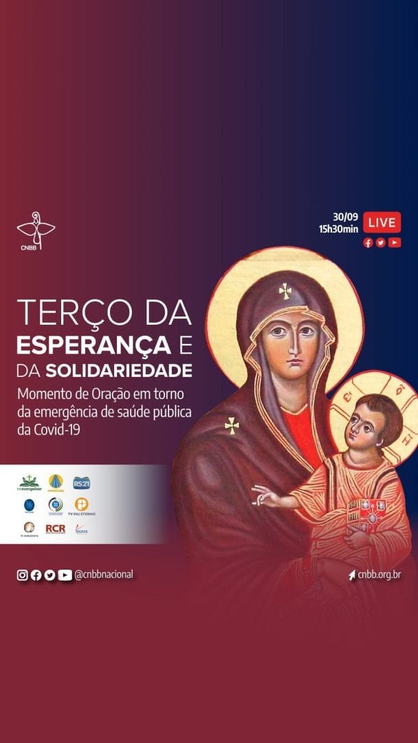 O Terço da Esperança e da Solidariedade desta quarta-feira, 30 de setembro, será conduzido pelo bispo de Paranavaí (PR), dom Mário Spaki. O momento de oração em torno da emergência de saúde pública da Covid-19 é uma iniciativa da Conferência Nacional dos Bispos do Brasil (CNBB) em parceria com as emissoras de TV e rádio de inspiração católica. Será possível acompanhar o terço pela TV e pelas redes sociais da CNBB, a partir das 15h30.