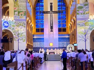 A noite desta terça-feira, 12 de maio, foi especial no Santuário Nacional de Aparecida. No altar central da Basílica da padroeira do Brasil, às 19h, teve início a reza do Terço em celebração aos 15 anos da V Conferência do Episcopado Latino-Americano e Caribe, mais conhecida como Conferência de Aparecida, que ocorreu de 13 a 31 de maio de 2007.