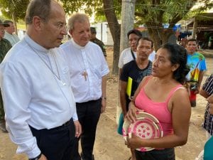 Em Pacaraima, município brasileiro localizado no norte do estado de Roraima, na fronteira com a Venezuela, o arcebispo de Belo Horizonte (MG) e presidente da Conferência Nacional dos Bispos do Brasil (CNBB), dom Walmor Oliveira de Azevedo falou da realidade dos migrantes e refugiados venezuelanos que, fugindo da crise em seu país, busca outros países como alternativa, entre eles o Brasil. Realidade que dom Walmor passou a conhecer mais de perto de 8 a 12 de março, em uma agenda de visitas à região junto aos três integrantes da presidência da CNBB.