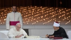 Nesta viagem a Abu Dhabi, um momento histórico foi a assinatura do “Documento sobre a fraternidade humana pela paz mundial e a convivência comum”, cujo signatário, ao lado do papa, foi o grão imame de Al-Azhar Ahmad Al-Tayyib. O texto é marcado pela condenação ao terrorismo e à violência, principalmente quando se dizem motivadas por questões religiosas.