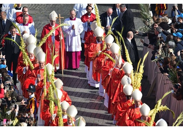 Ao final da missa, Francisco lembrou a 31ª Jornada Mundial da Juventude, celebrada neste Domingo de Ramos, em âmbito diocesano e que culminará no final de julho no Encontro Mundial em Cracóvia. “Ao regressarem à Polônia, levarão aos responsáveis da nação os ramos de oliveira provenientes de Jerusalém, Assis e Monteccasino e abençoados nesta Praça, como convite a cultivar propósitos de paz, de reconciliação e de fraternidade. Prossigam com coragem!”, disse Francisco aos inúmeros jovens de Cracóvia presentes na Praça São Pedro.